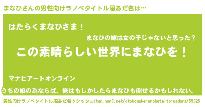 | ヒーロー風カッコイイあだ名 | 『仮面マナダー』『ウルトラまなひマン』 |
