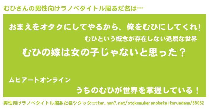 | 女子向けラノベタイトル風あだ名 | 『むひ様がみてる』『むひ夫妻のなれそめ』 |