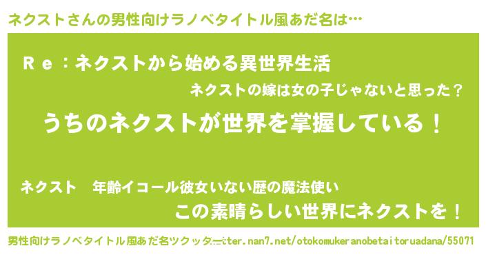 | 意味不明あだ名 | 『自称ネクスト』『つくし科ネクスト属』 |