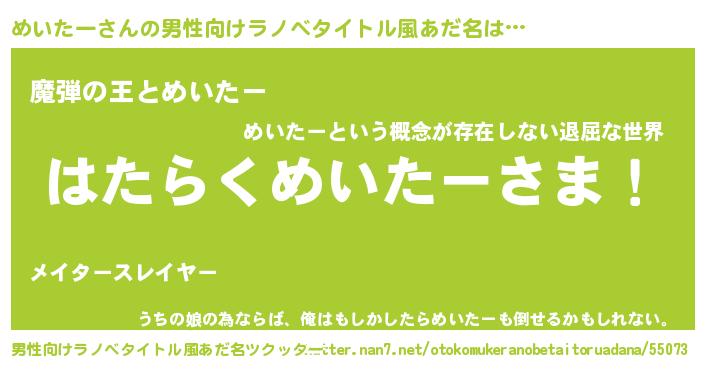 | 意味不明あだ名 | 『住所不定無職めいたー(12歳)』 |