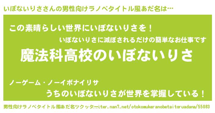 | 女子向けラノベタイトル風あだ名 | 『いぼないりさなんてお断りですっ。』 |