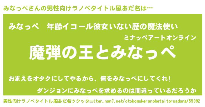 | 意味不明あだ名 | 『住所不定無職みなっぺ(68歳)』 |