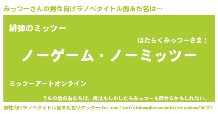 | ヘコむあだ名 | 『なまこ酢』『みっもー』 |