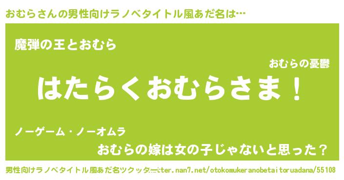 おむらさんの男性向けラノベタイトル風あだ名をツクッター!
