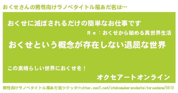 | 胡散臭い通販商品みたいなあだ名 | 『来世でも幸せになれる健康食品…その名も「おくせ」』 |
