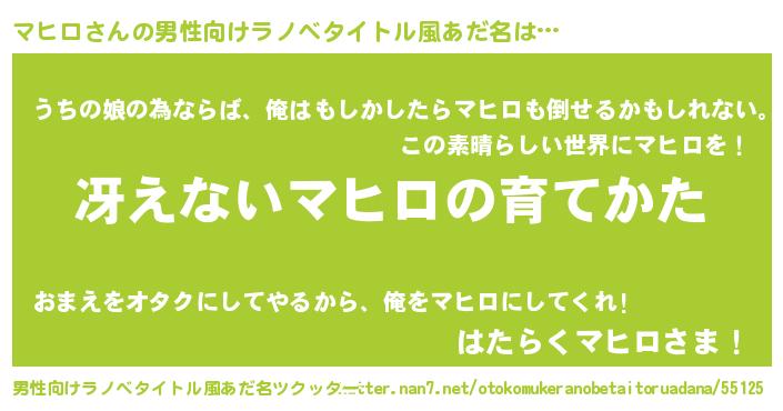 | ヘコむあだ名 | 『なまこ酢』『マヒもー』『マヒ太郎』 |