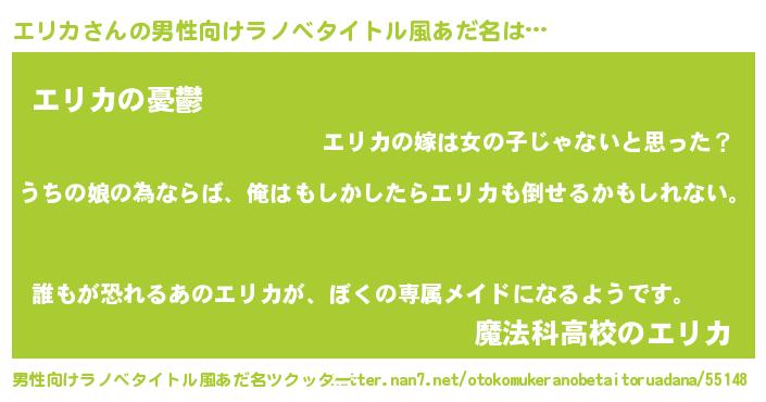 | 女子向けラノベタイトル風あだ名 | 『エリカの婚約者』『エリカ様がみてる』 |