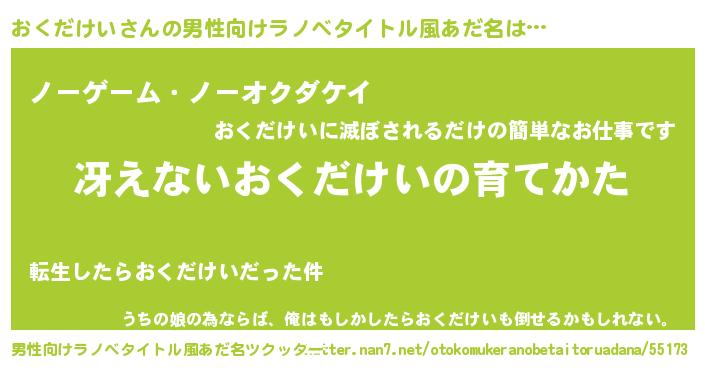 | 女子向けラノベタイトル風あだ名 | 『シンデレラおくだけい家の靴箱館』 |