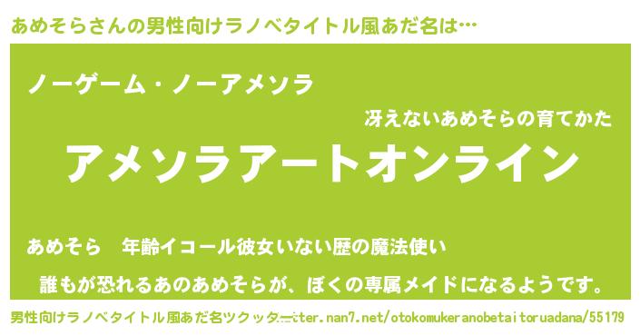 | 女子向けラノベタイトル風あだ名 | 『あめそら姫と円卓の騎士』 |