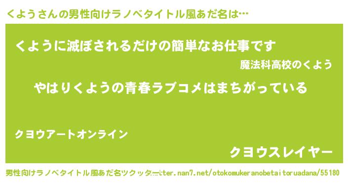 | ヒーロー風カッコイイあだ名 | 『ウルトラくようマン』『最強戦士クヨウ』 |