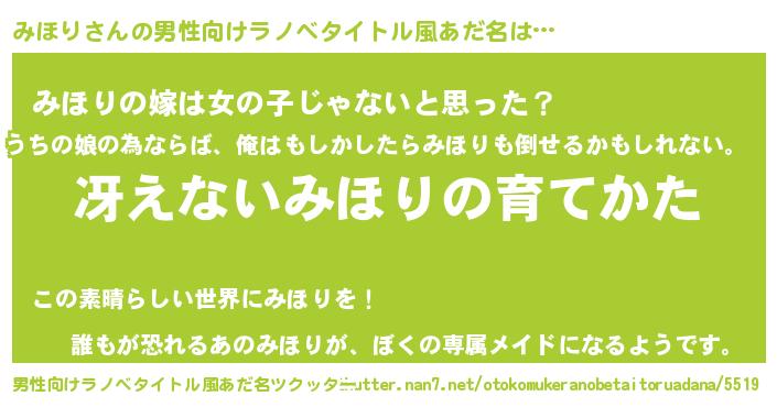みほりさんの男性向けラノベタイトル風あだ名をツクッター!