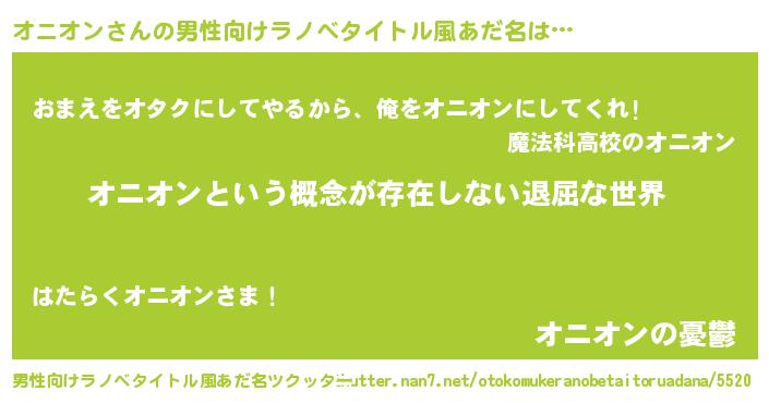 | ヒーロー風カッコイイあだ名 | 『ネオオニオン』『愛の使者オニオン』 |