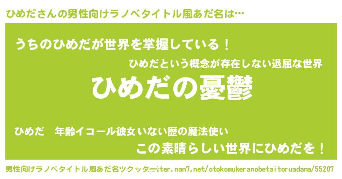 | 胡散臭い通販商品みたいなあだ名 | 『必ず成功するブレスレット…その名も「ひめだ」』 |