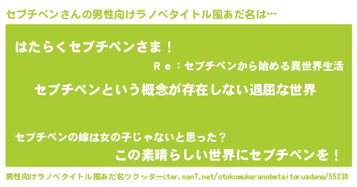 | 胡散臭い通販商品みたいなあだ名 | 『絶対に幸福をもたらす健康食品…その名も「セブチペン」』 |