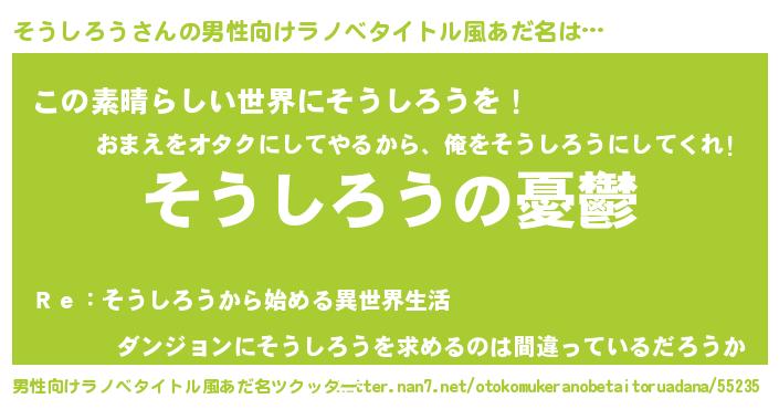| 胡散臭い通販商品みたいなあだ名 | 『必ず成功する霊験あらたかなお札…その名も「そうしろう」』 |