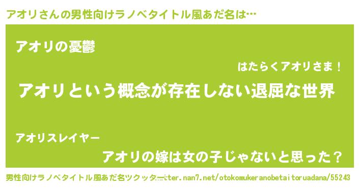 | 胡散臭い通販商品みたいなあだ名 | 『来世でも幸せになれる健康食品…その名も「アオリ」』 |