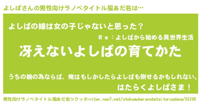 | 女子向けラノベタイトル風あだ名 | 『シンデレラよしば家の靴箱館』 |