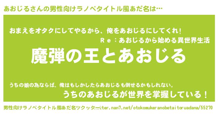 | 意味不明あだ名 | 『住所不定無職あおじる(71歳)』 |