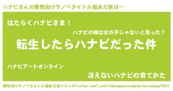 | ヘコむあだ名 | 『ハナ太郎』『ハナにー』『なまこ酢』 |