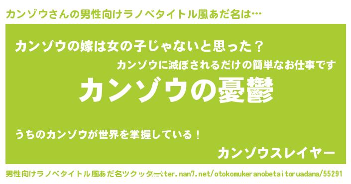 | 女子向けラノベタイトル風あだ名 | 『(仮)カンゾウのやんごとなき事情』 |