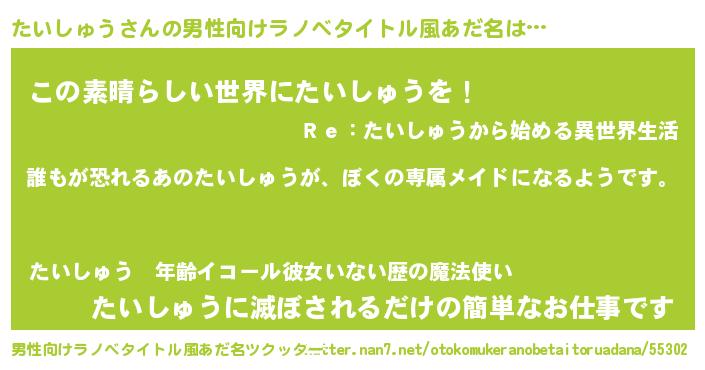 | 胡散臭い通販商品みたいなあだ名 | 『来世でも幸せになれる水素水…その名も「たいしゅう」』 |