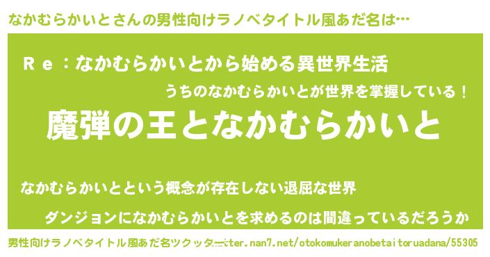 | 女子向けラノベタイトル風あだ名 | 『なかむらかいとが死なない童話 林檎のなかむらかいとの診療簿』 |