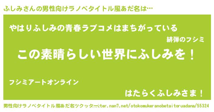 | 女子向けラノベタイトル風あだ名 | 『悪役ふしみに転生したようですが、知った事ではありません』 |