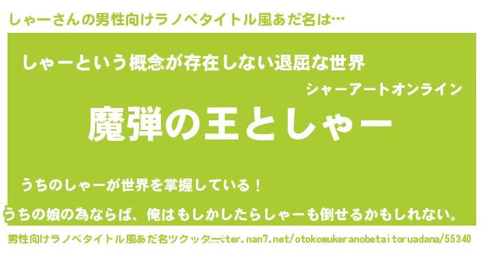 | 意味不明あだ名 | 『住所不定無職しゃー(62歳)』 |