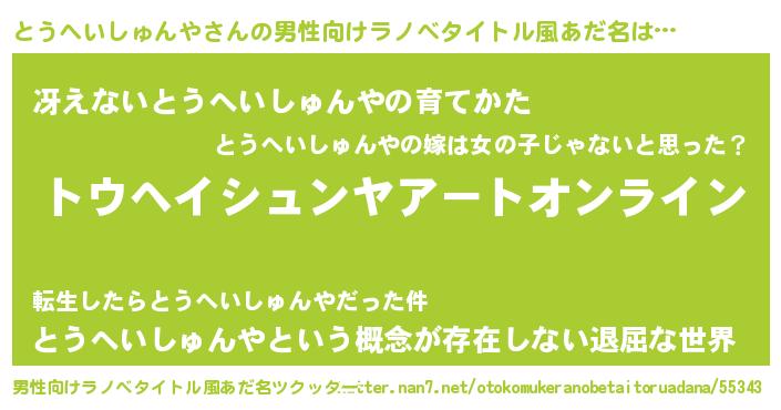 | ヒーロー風カッコイイあだ名 | 『スーパートウヘイシュンヤ』 |