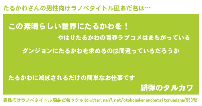 | 女子向けラノベタイトル風あだ名 | 『たるかわは平凡を望む』 |