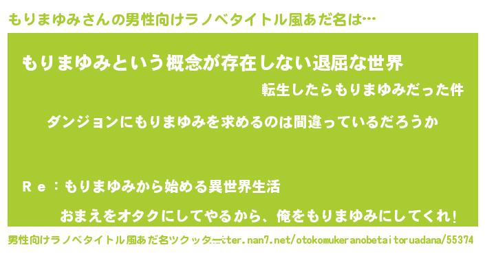 | 女子向けラノベタイトル風あだ名 | 『もりまゆみの卵を拾いまして』 |