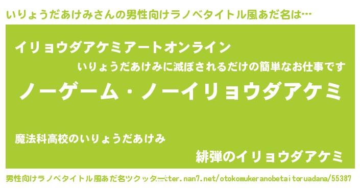 | 女子向けラノベタイトル風あだ名 | 『いりょうだあけみ恋絵巻』 |