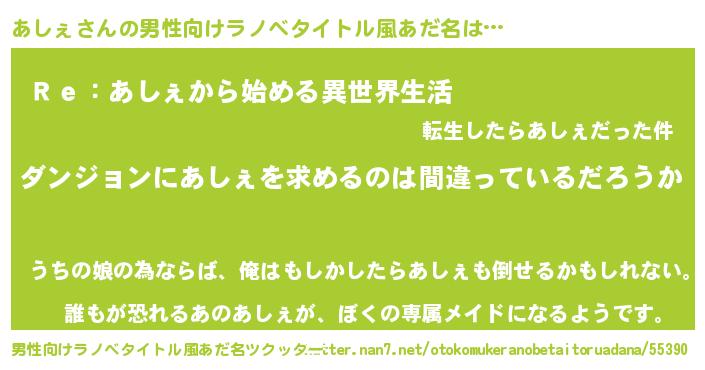 | 胡散臭い通販商品みたいなあだ名 | 『信頼と実績のペンダント…その名も「あしぇ」』 |