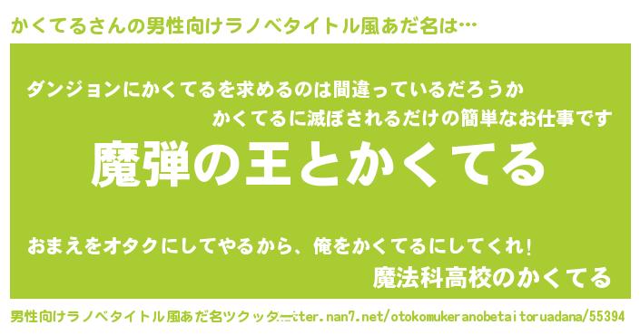 | 女子向けラノベタイトル風あだ名 | 『かくてるが死なない童話 林檎のかくてるの診療簿』 |