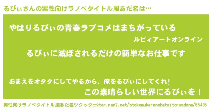 | 胡散臭い通販商品みたいなあだ名 | 『世界が平和になる高級そうな壺…その名も「るびぃ」』 |