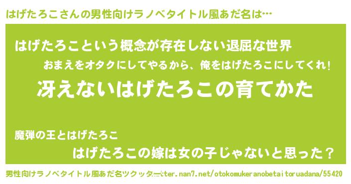 | 意味不明あだ名 | 『永久保存はげたろこ』 |