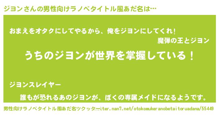 | 女子向けラノベタイトル風あだ名 | 『男装ジヨンの憂鬱な任務』 |