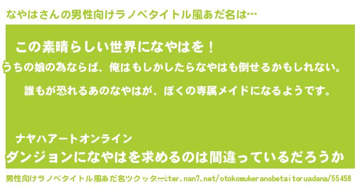 | 女子向けラノベタイトル風あだ名 | 『なやはの契約王妃』『なやは伯爵の花嫁』 |