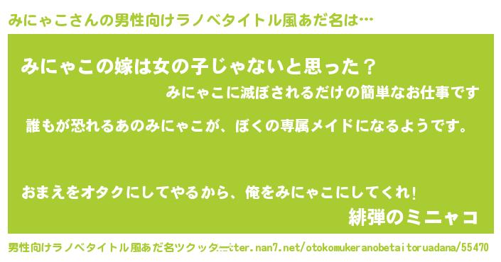 | 女子向けラノベタイトル風あだ名 | 『異世界でカフェみにゃこを開店しました。』 |