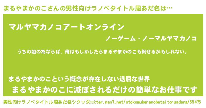 | 女子向けラノベタイトル風あだ名 | 『まるやまかのこ伯爵の花嫁』 |