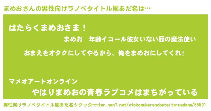 | 女子向けラノベタイトル風あだ名 | 『まめお恋絵巻』『首の姫と首なしまめお』 |