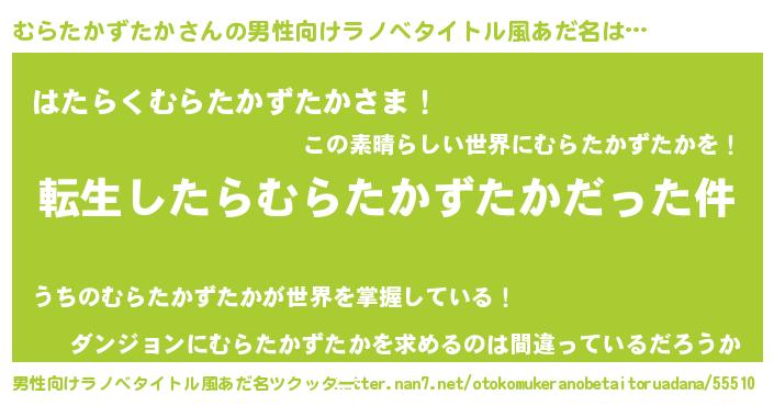 | 女子向けラノベタイトル風あだ名 | 『むらたかずたかの玉の輿計画!』 |