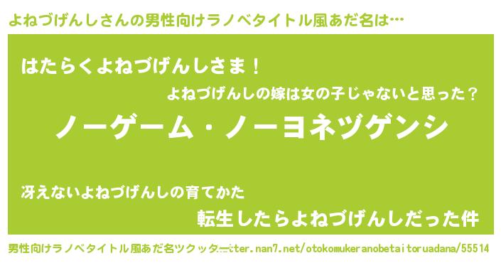 よねづげんしさんの男性向けラノベタイトル風あだ名をツクッター!