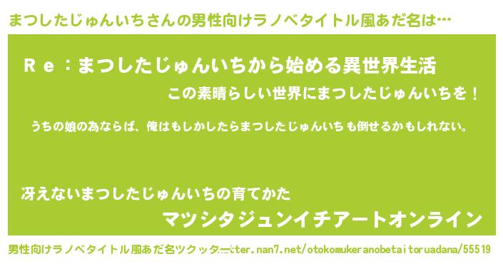 | 女子向けラノベタイトル風あだ名 | 『まつしたじゅんいちの婚約者』 |
