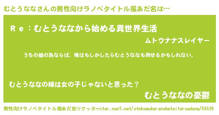 | 胡散臭い通販商品みたいなあだ名 | 『運命の人と巡り会える高級そうな壺…その名も「むとうなな」』 |
