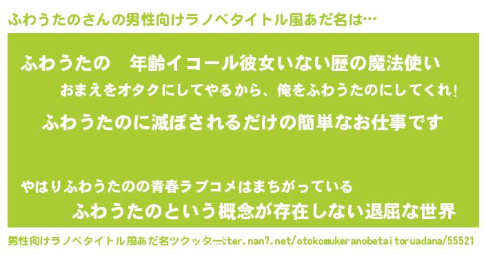 | 胡散臭い通販商品みたいなあだ名 | 『来世でも幸せになれる水素水…その名も「ふわうたの」』 |