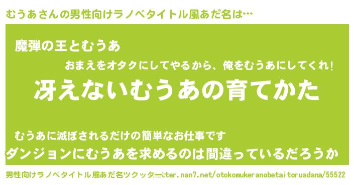 むうあさんの男性向けラノベタイトル風あだ名をツクッター!