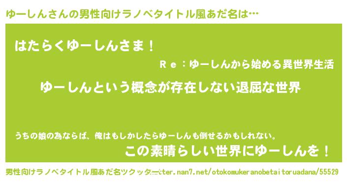 | 女子向けラノベタイトル風あだ名 | 『ゆーしんの契約王妃』 |