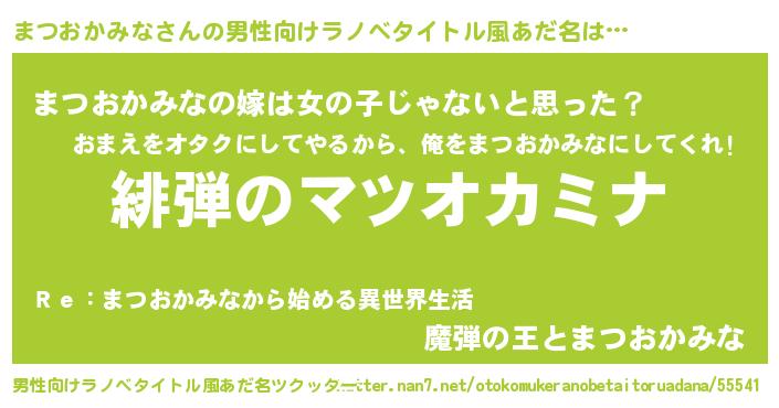 | 胡散臭い通販商品みたいなあだ名 | 『信頼と実績のサプリメント…その名も「まつおかみな」』 |