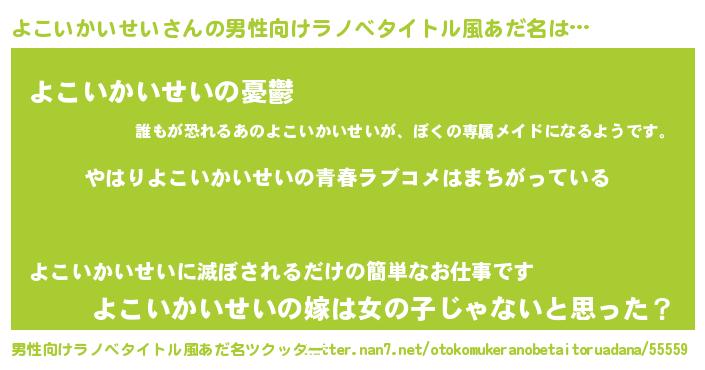 | 女子向けラノベタイトル風あだ名 | 『よこいかいせいの雑貨屋さん』 |